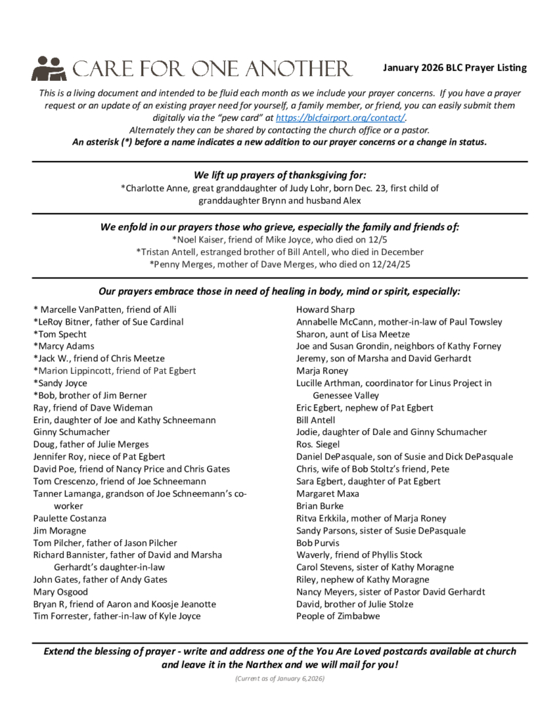 2026 January Draft Prayer List