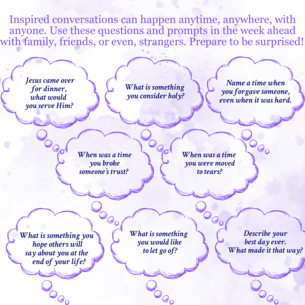 BLC’s calendar featuring Inspired Conversation starters allows families a flexible and quick way to connect with each other during this lenten season. If your family is anything like mine, days can pass when it seems the only time we have together is riding in the car on the way to the next activity. Inspired Conversation starters provide an invitation to connect through sharing and listening to each other, if only for a few minutes during a busy day – waiting for the bus, riding in the car, eating a quick meal at Tom Wahls, getting ready for bed.